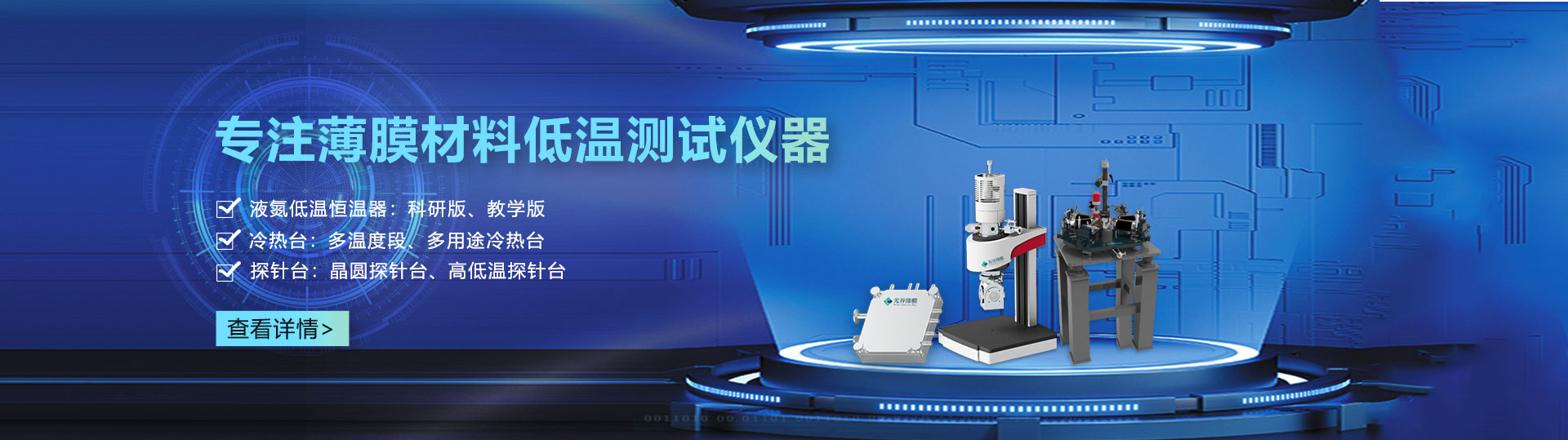 專注于液氮低溫恒溫器、冷熱臺(tái)、探針臺(tái)等薄膜材料測(cè)試儀器的研發(fā)以及技術(shù)服務(wù)